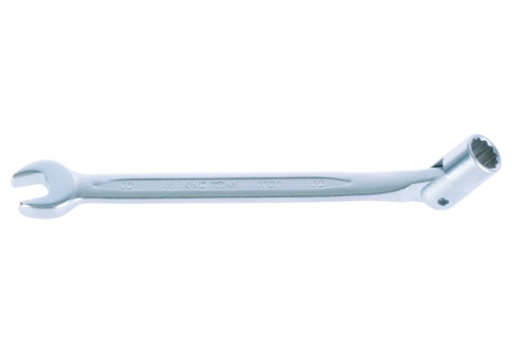 Klucz płasko-nasadowy przegubowy 8 mm. Całkowita długość klucza 170 mm. Cienki klucz z obracającą się o 180 stopni końcówką z kluczem nasadowym.