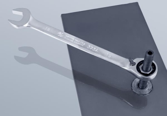 • 373A22M - KLUCZ PŁASKO-OCZKOWY Z GRZECHOTKĄ DWUKIERUNKOWĄ 72 ZĘBY Z BLOKADĄ OCZKA 290 x 22mm