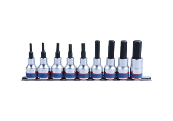4120PR10 - ZESTAW NASADEK Z KOŃCÓWKĄ HEX 1/2" 9 cz. DŁUGIE 4 - 17mm ZESTAW NA SZYNIE