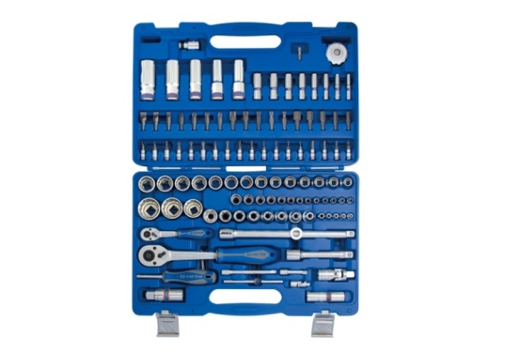 7011MR - ZESTAW NASADEK 1/4"+ 1/2" 110cz. 4 - 32mm 12-kąt. Z AKCESORIAMI, CHROM+NARZĘDZIA UNIWERSALNE W WALIZCE.