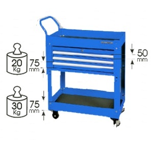 87441-3B-B - WÓZEK WARSZTATOWY 3 SZUFLADY, BLAT ROBOCZY, 1 PÓŁKA (BEZ NARZĘDZI), PROWADNICE ŁOŻYSKOWANE, NIEBIESKI