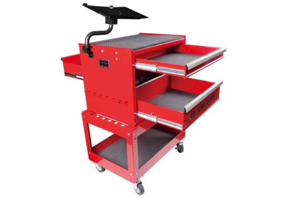 Wymiary: wózek: 765x490x948 mm wózek z kółkami: 765x490x1050 mm 1 szuflada: 576x415x75 mm2 szuflada: 576x415x154 mm Ładowność: 250 kg. Waga: 50 kg3 szuflady, 2 półki, blat roboczy, łożyskowane prowadnice