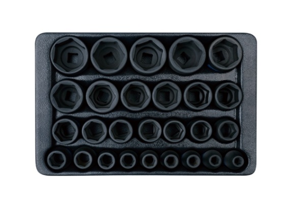 ZESTAW NASADEK UDAROWYCH 1/2" 27 cz. KRÓTKIE 6-KĄT, 8 - 36mm, WKŁAD DO WÓZKA