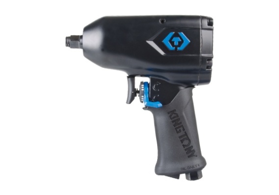 Klucz udarowy pneumatyczny 1/2" King Tony. Prędkość obrotowa do 8000 obrotów na minutę. Zalecanie ciśnienie powietrza 90PSI, zużycie powietrza około 4.9 metra sześciennego na godzinę. Standardowy trzpień, maksymalny moment obrotowy 881 Nm. Długość całkowita klucza 175 mm, waga 2,58 kg