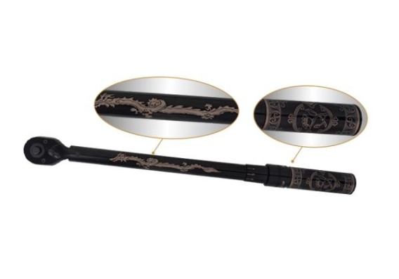 Zakres: 40 - 200 Nm z dokładnością 1 Nm.Długość klucza: 521 mm.Ergonomiczna rączka.Czytelna skala.Grzechotka klucza z przyciskiem pozwala na łatwe zdejmowanie nasadek.Czarne wykończenie - malowanie przez elektroosadzanie. Motyw smoka wykonany laserowo.