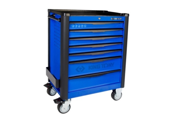 PROMOCJA - WÓZEK WARSZTATOWY Z PROTEKTORAMI 7 SZUFLAD (BEZ NARZĘDZI) - NIEBIESKI. PROWADNICE ŁOŻYSKOWANE