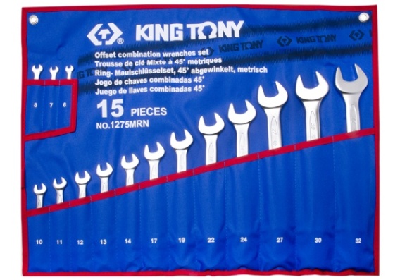King Tony ZESTAW KLUCZY PŁASKO-OCZKOWYCH ODGIĘTYCH 15cz. 6 - 32mm, ETUI