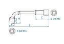Profesjonalny klucz fajkowy 90 stopni o rozmiarze 15 mm. Specjalny otwór na zgięciu ułatwia pracę z długim gwintem. Klucz posiada dwie końcówki 6-kątne