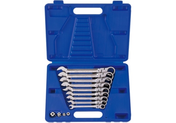 Każdy klucz posiada typową końcówkę płaską oraz wyginaną końcówkę oczkową z grzechotką, która bardzo ułatwia szybkie odkręcanie trudno dostępnych śrub.