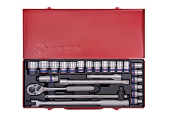 Zestaw narzędzi 1/2" King Tony w metalowej kasecie. W zestawie znajdują się nasadki krótkie, 12-kątne w rozmiarach [ mm ]: 10, 11, 12, 13, 14, 15, 16, 17, 18, 19, 20, 21, 22, 23, 24, 27, 30, 32, nasadka do świec, 12-kątna, 21 mm, grzechotka z moletowaną rączką, pokrętło przesuwne, pokrętło łamane oraz dwie przedłużki.