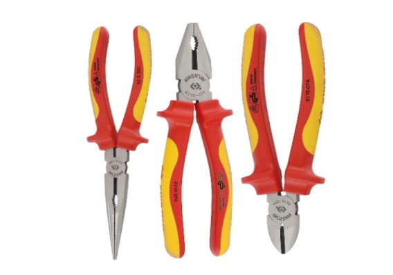 W zestawie szczypce:- 6116-07A szczypce uniwersalne typ europejski, izolowane 180 mm - 6216-06A izolowane szczypce tnące boczne. Pozwalają na pracę do 1000V, całkowita długość 167. Wykonane ze stali chromowo-wanadowej z wygodną w użyciu plastikową rączką. Maksymalna średnica przewodu to 4.0 mm dla przewodów miękkich. - 6318-08A izolowane szczypce wąskie. Izolacja do 1000V, długość szczypiec 210 mm. Maksymalna średnica przecinanego drutu to 4 mm (dla materiałów miękkich)