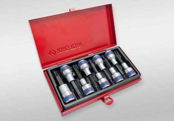 Zestaw nasadek 1/2" z końcówką TORX firmy King Tony. Zestaw w metalowej kasecie zawiera 9 długich nasadek w rozmiarach: T20, T25, T27, T30, T40, T45, T50, T55, T60. Nasadki wykonane ze stali chromowo-wanadowej, bity z chromowo-molibdenowej.