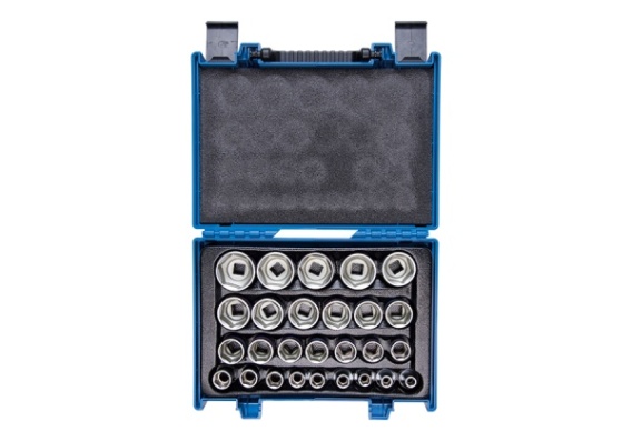 W zestawie nasadki w rozmiarach: 8, 9, 10, 11, 12, 13, 14, 15, 16, 17, 18, 19, 20, 21, 22, 23, 24, 25, 26, 27, 28, 29, 30, 32, 33, 34, 36 mm. Wytłoczka #7 o wymiarach: 280 x 187 mm Walizka: 820001