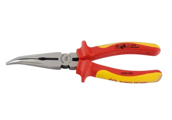 Izolowane szczypce wąskie wygięte firmy King Tony. Długość szczypiec 200 mm, maksymalna średnica przecinanego drutu to 4 mm (dla miękkich materiałów) . Izolacja do 1000V.