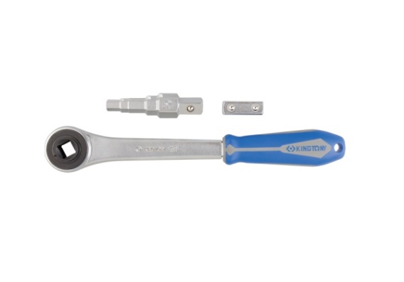Klucz do śrubunków 1/2" wyposażony w grzechotkę przelotową i klucz sztorcowy stopniowany do rozmiarów 3/8", 1/2" ,3/4", 1". Przeznaczony między innymi do montażu i demontażu łączników z gwintem zewnętrznym, śrubunków. Grzechotka wyposażona jest w 32-zębowy mechanizm zapadkowy.