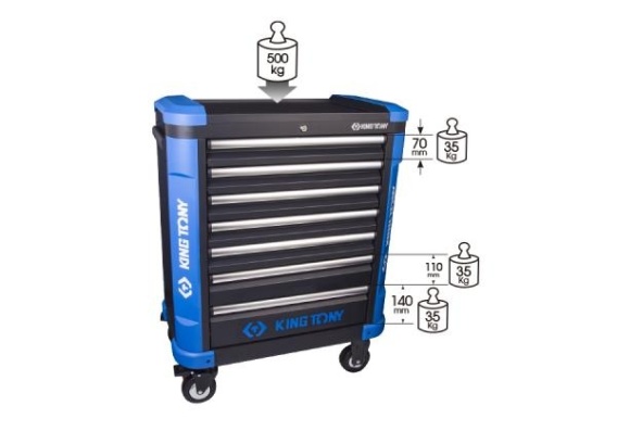 • 87G31-7BA-BK - WÓZEK WARSZTATOWY Z PROTEKTORAMI 7 SZUFLAD (BEZ NARZĘDZI) - CZARNO NIEBIESKI, PROWADNICE ŁOŻYSKOWANE