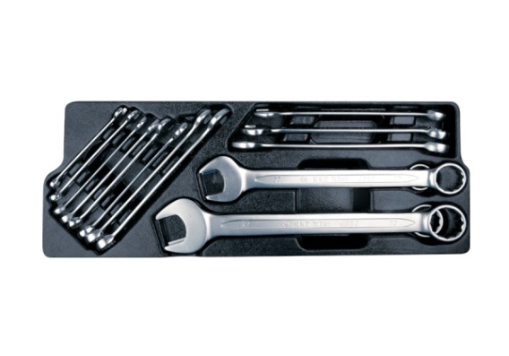 Zestaw kluczy płasko-oczkowych 15 częściowy, w skład zestawy wchodzą rozmiary: 8 - 32mm, Wkład do skrzynki 87408