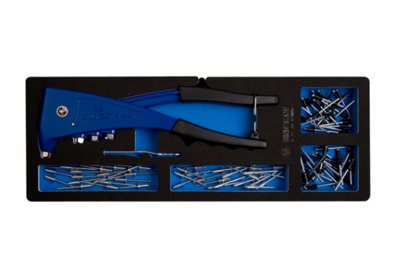 9-21-20-07MRV - NITOWNICA RĘCZNA DO NITÓW STALOWYCH 2.4 - 4.8mm Z ZESTWEM NITÓW, WKŁAD Z PIANKI EVA DO WÓZKA