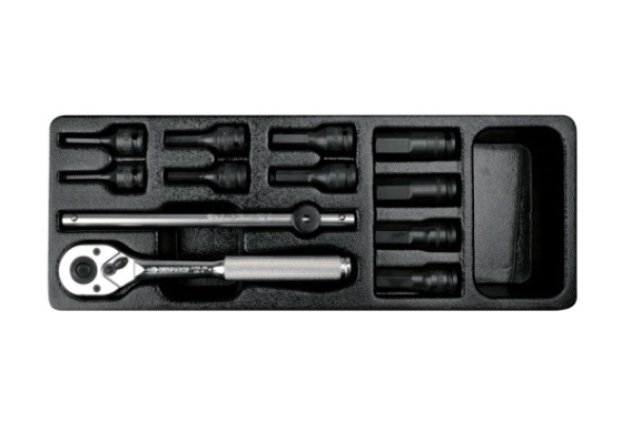 9-3432MP - ZESTAW NASADEK UDAROWYCH 3/8" 12cz. KRÓTKIE HEX H4-H17 Z AKCESORIAMI, WKŁAD DO WÓZKA