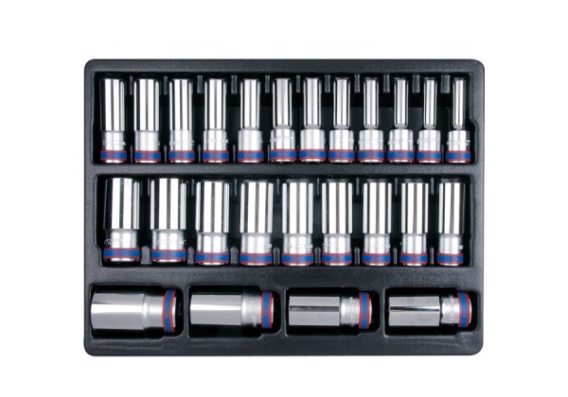 ZESTAW NASADEK 1/2" 25cz. DŁUGIE 12-kąt. 8 - 36mm, CHROM, WKŁAD DO WÓZKA
