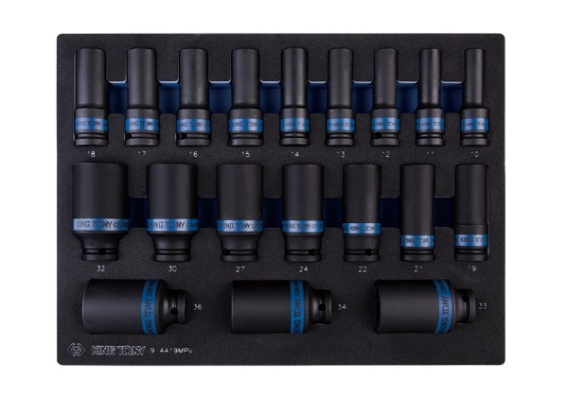 9-4419MPV - ZESTAW NASADEK UDAROWYCH 1/2" 19 cz. DŁUGIE 6-KĄT, 10 - 36mm, WKŁAD Z PIANKI EVA DO WÓZKA