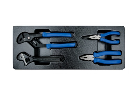 Klucz nastawny "szwed", szczypce nastawne, kombinerki oraz szczypce uniwersalne wąskie we wkładzie do wózka narzędziowego