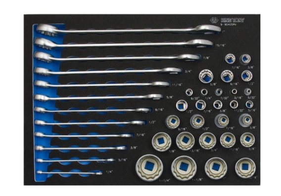 9-9040SRV - ZESTAW NASADEK 1/4"+3/8"+1/2" + KLUCZE PŁASKO OCZKOWE CALOWE 40cz., WKŁAD Z PIANKI EVA DO WÓZKA