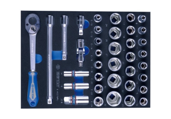Specjalny zestaw narzędzi odpowiedni do samochodów VOLKSWAGEN-GROUP, MERCEDES-BENZ, OPEL, BMW oraz japońskich samochodów osobowych. W zestawie nasadki 8, 10, 11, 12, 13, 14, 15, 16, 17, 18, 19, 20, 21, 22, 23, 24, 26, 27, 28, 30, 32 mm, gwiazdkowe E10-E24,do świec, przegub kardana,przedłużki, grzechotka.