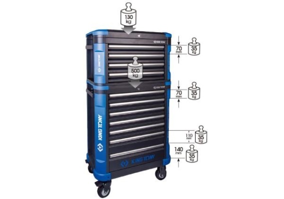 • PROMOCJA - WÓZEK NARZĘDZIOWY Z NADSTAWKĄ Z PROTEKTORAMI 11 SZUFLAD (BEZ NARZĘDZI). 87G31-7BA-BK + 87G11-4BA-BK