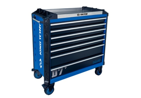 PROMOCJA - WÓZEK WARSZTATOWY SQUAD - 7 SZUFLAD. ROZMIAR L. NIEBIESKI Z CZARNYMI SZUFLADAMI