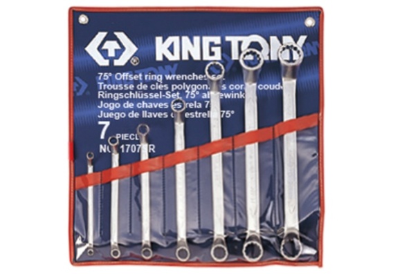 King Tony ZESTAW KLUCZY OCZKOWYCH ODGIĘTYCH 75° CALOWYCH 1/4 - 1.1/8", 7cz. ETUI