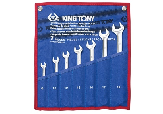 • ZESTAW KLUCZY PŁASKO-OCZKOWYCH DŁUGICH 7cz. 8 - 19mm, ETUI