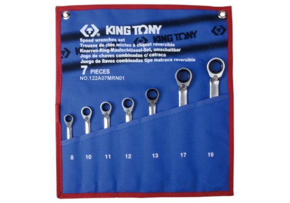 King Tony NOWOŚC ZESTAW KLUCZY PŁASKO-OCZKOWYCH Z GRZECHOTKĄ DWUKIERUNKOWĄ 373A 7cz. 8 - 19mm, ETUI