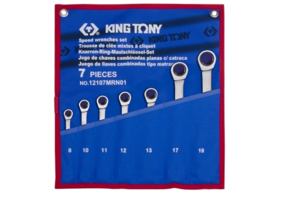 King Tony ZESTAW KLUCZY PŁASKO-OCZKOWYCH Z GRZECHOTKĄ JEDNOKIERUNKOWĄ 7cz. 8 - 19mm, ETUI