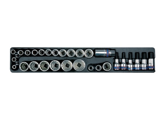 ZESTAW- NASADKI 1/2" 12-KĄT. KRÓTKIE 8 - 32mm, 7/16"-7/8", HEX H5 - H14, NASADKA DO ŚWIEC 21mm, WKŁAD DO SKRZYNKI 87408, 29 CZ.